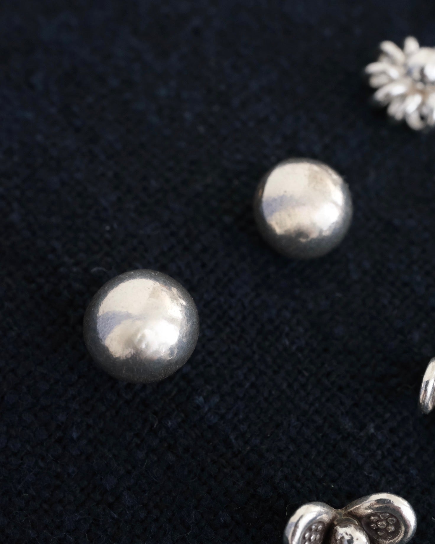 タイ・チェンマイの山岳民族カレン族が作る「カレンシルバー」のパーツを使ったピアスです。耳の穴にまっすぐ通してキャッチで留めるスタッドタイプ。「シルバボール」はシンプルな球のモチーフ。S、Mの2サイズがあります。