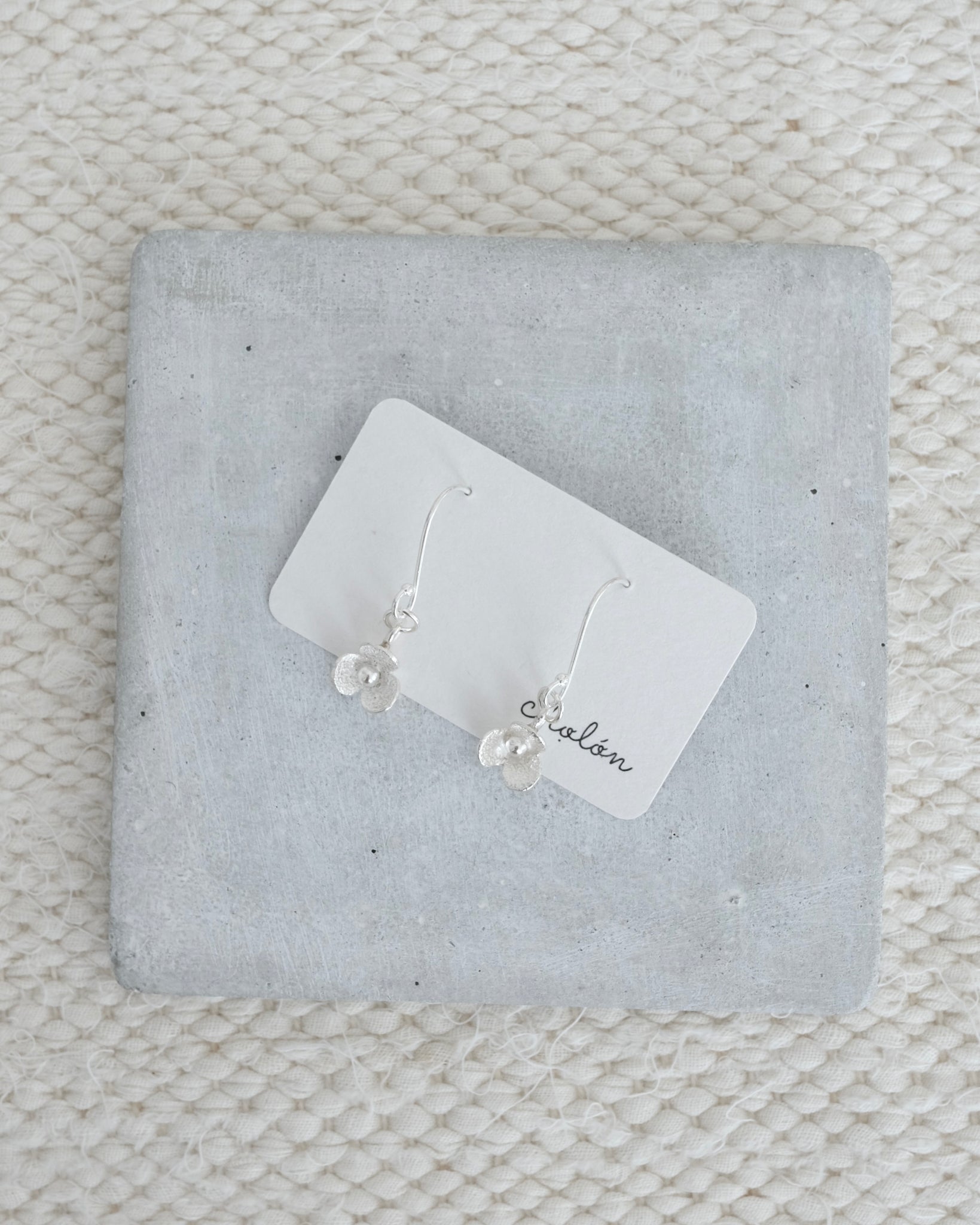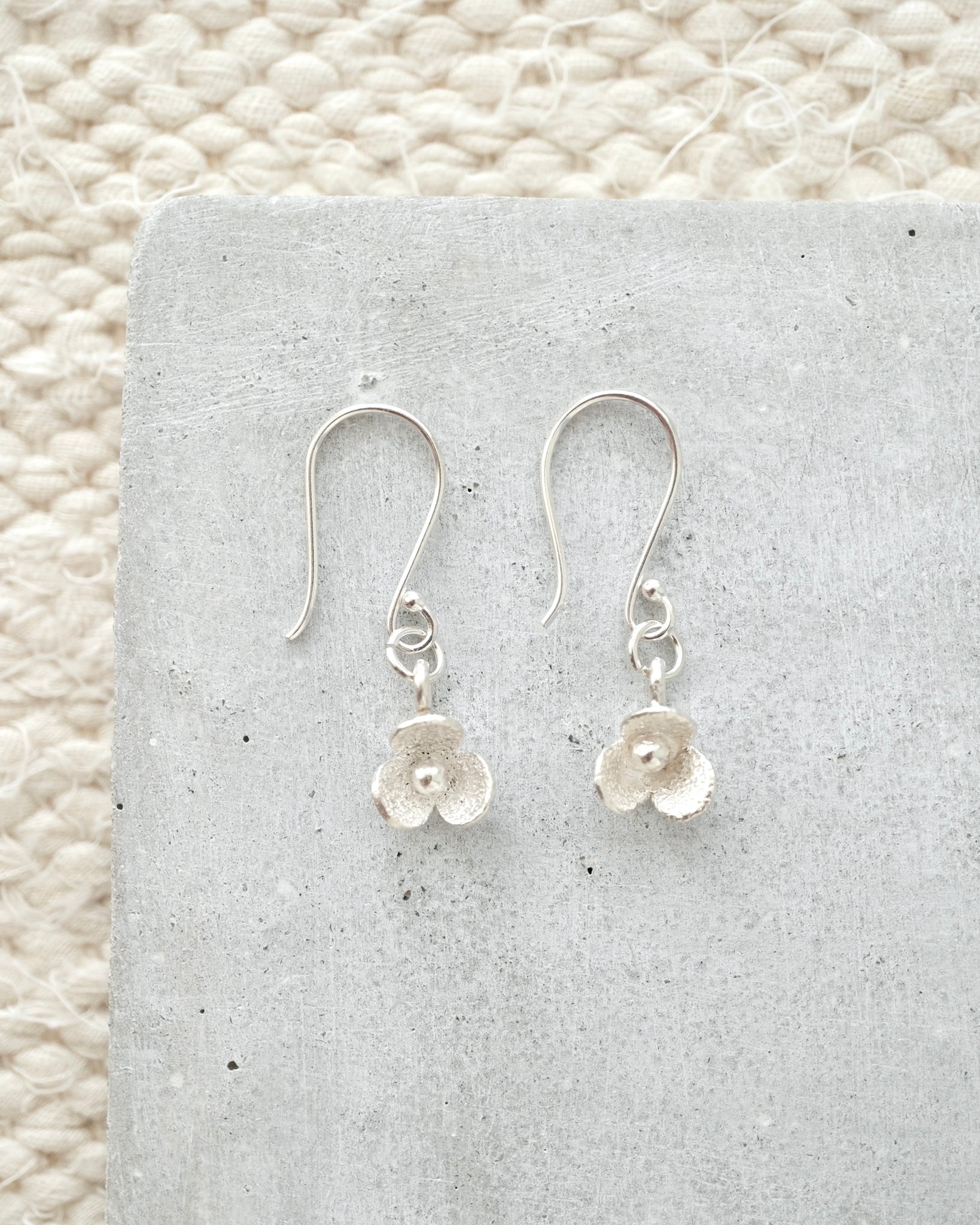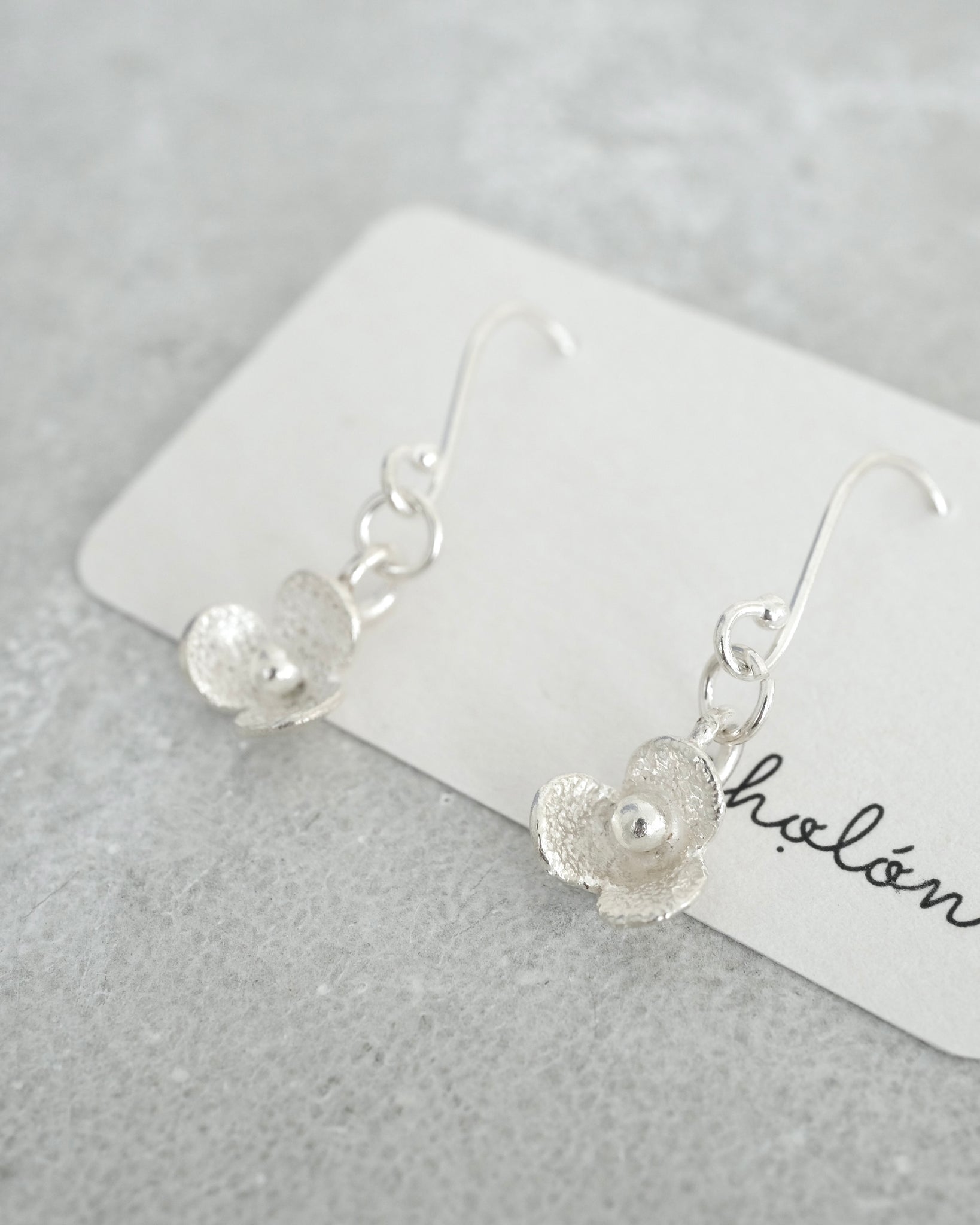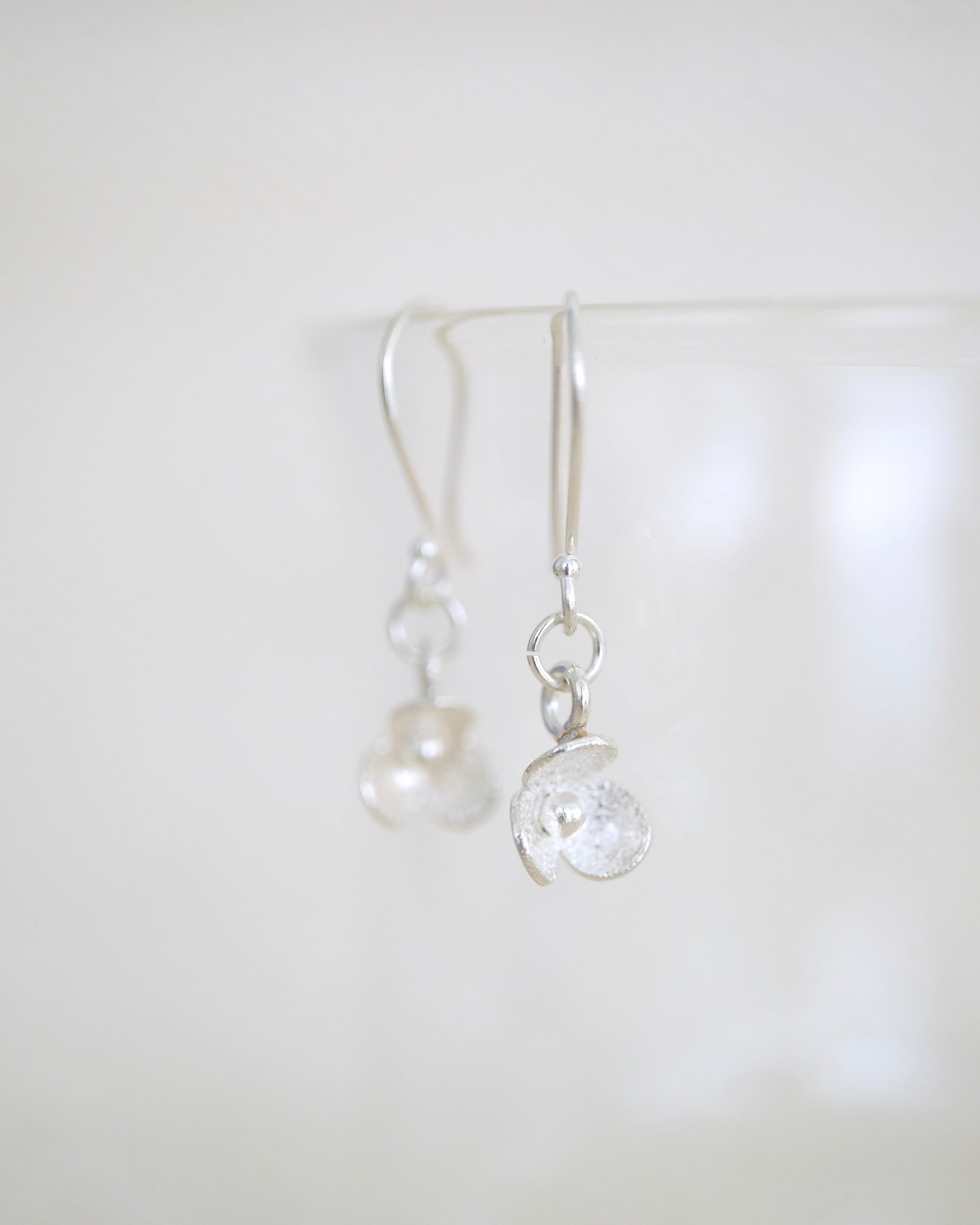 タイ北部の山岳民族カレン族が作る「カレンシルバー」のフックタイプのピアスです。「ポピー」は3枚の花びらを持つ立体的なデザイン。小さな花が揺れる可憐な雰囲気です。