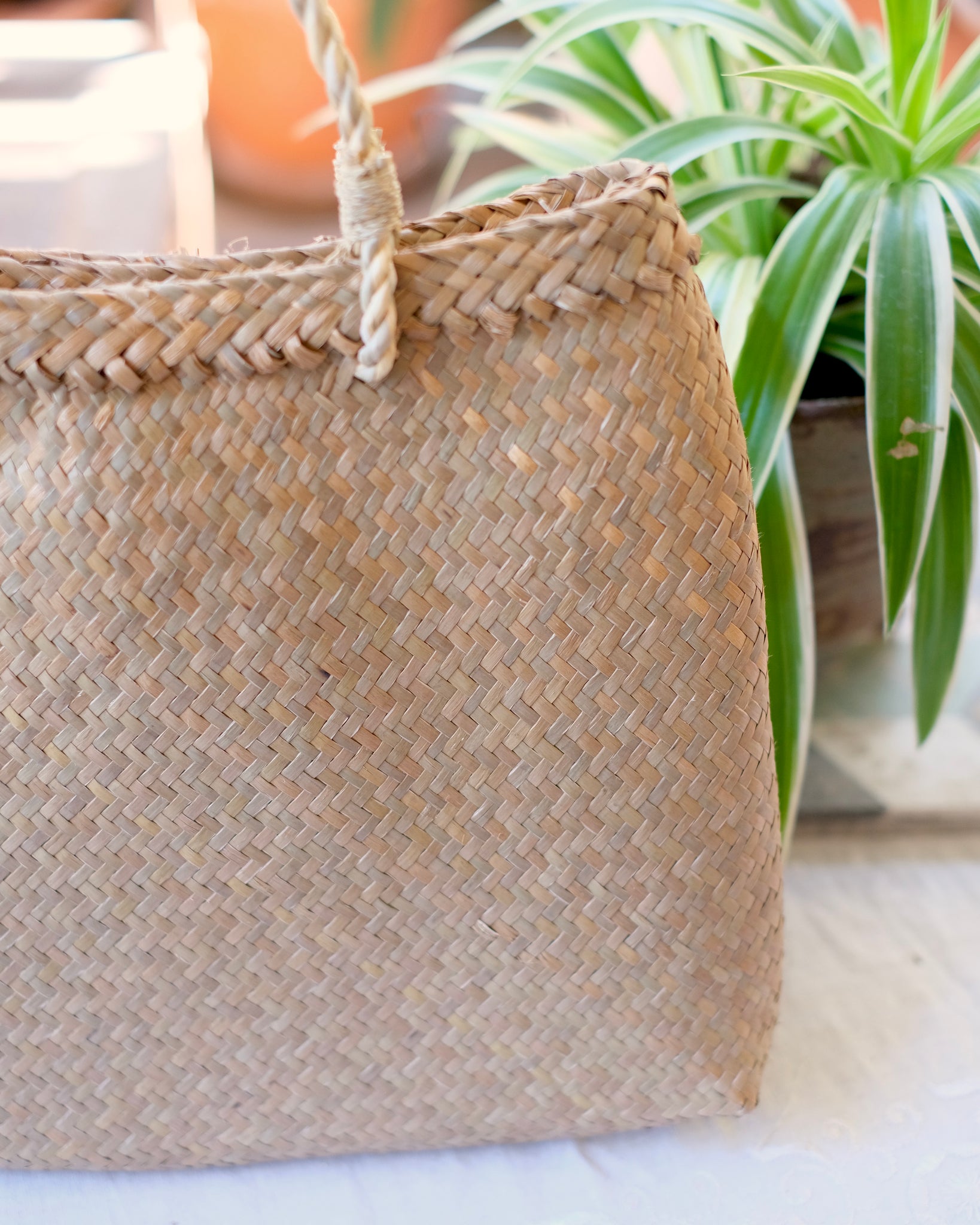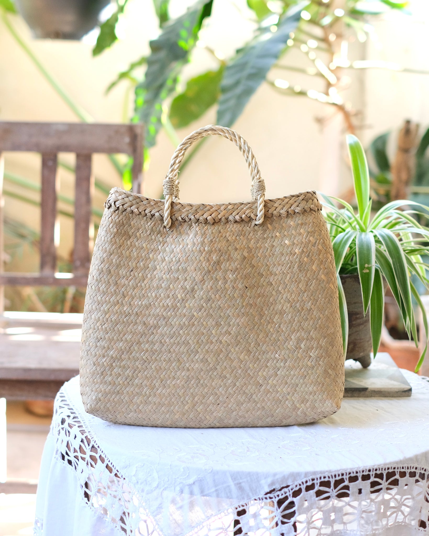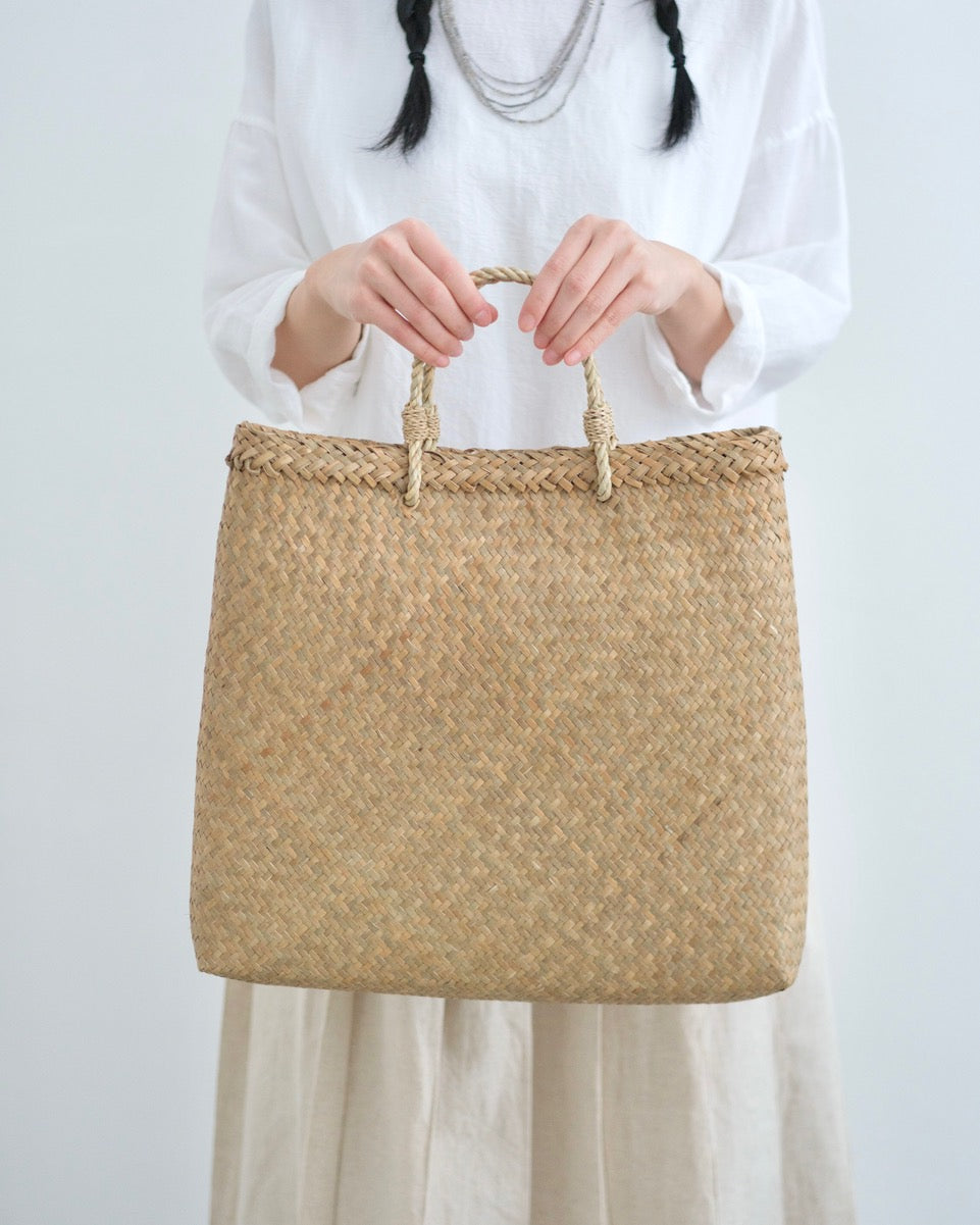 タイの南部で育つkrajood(クラチュー)と呼ばれる水草を丁寧に編んだかごバッグです。