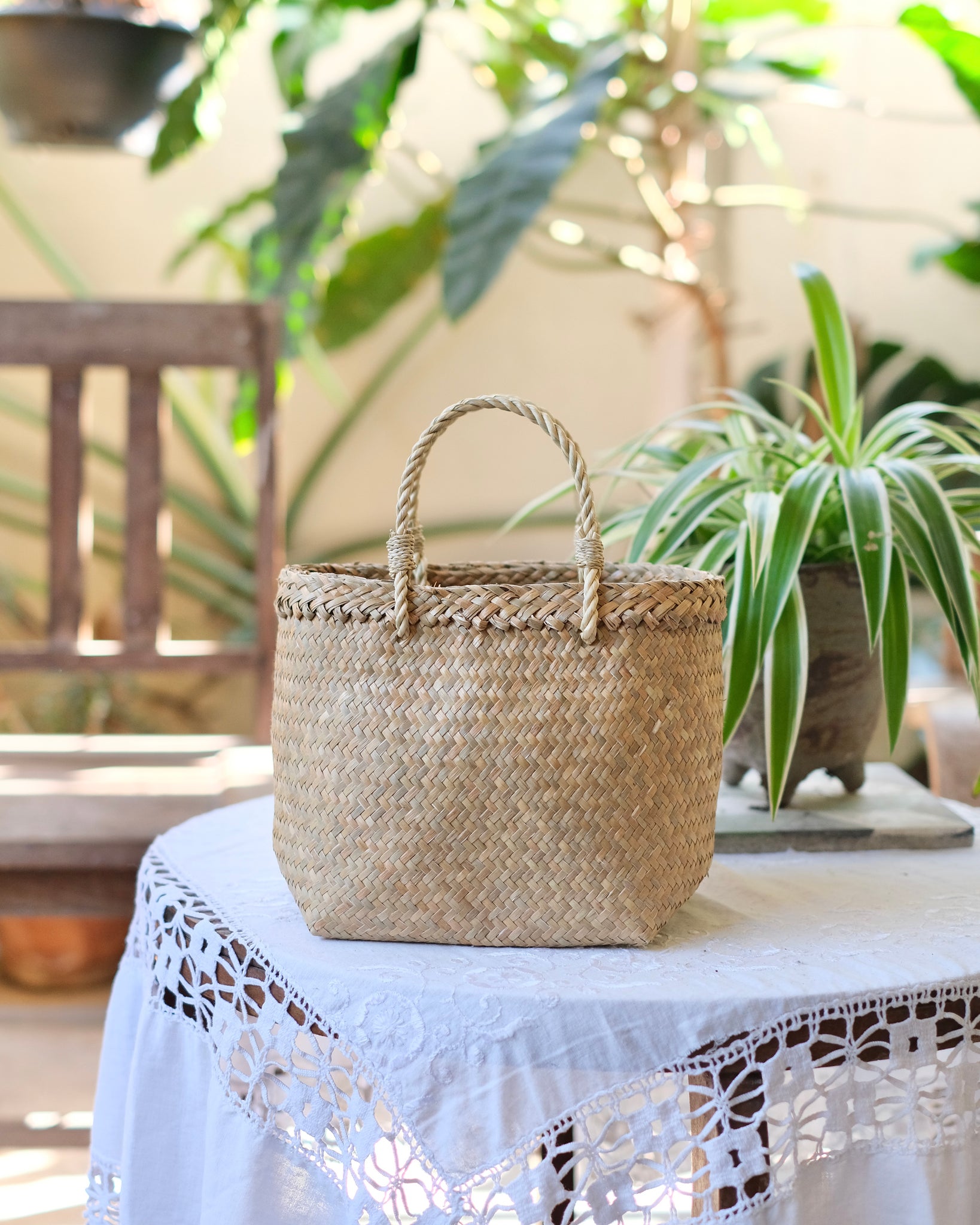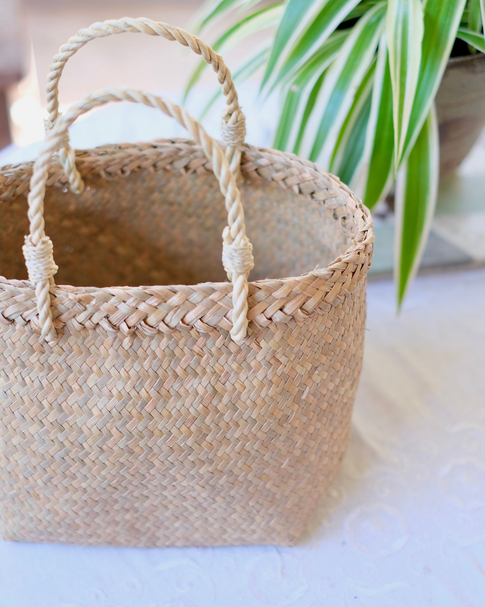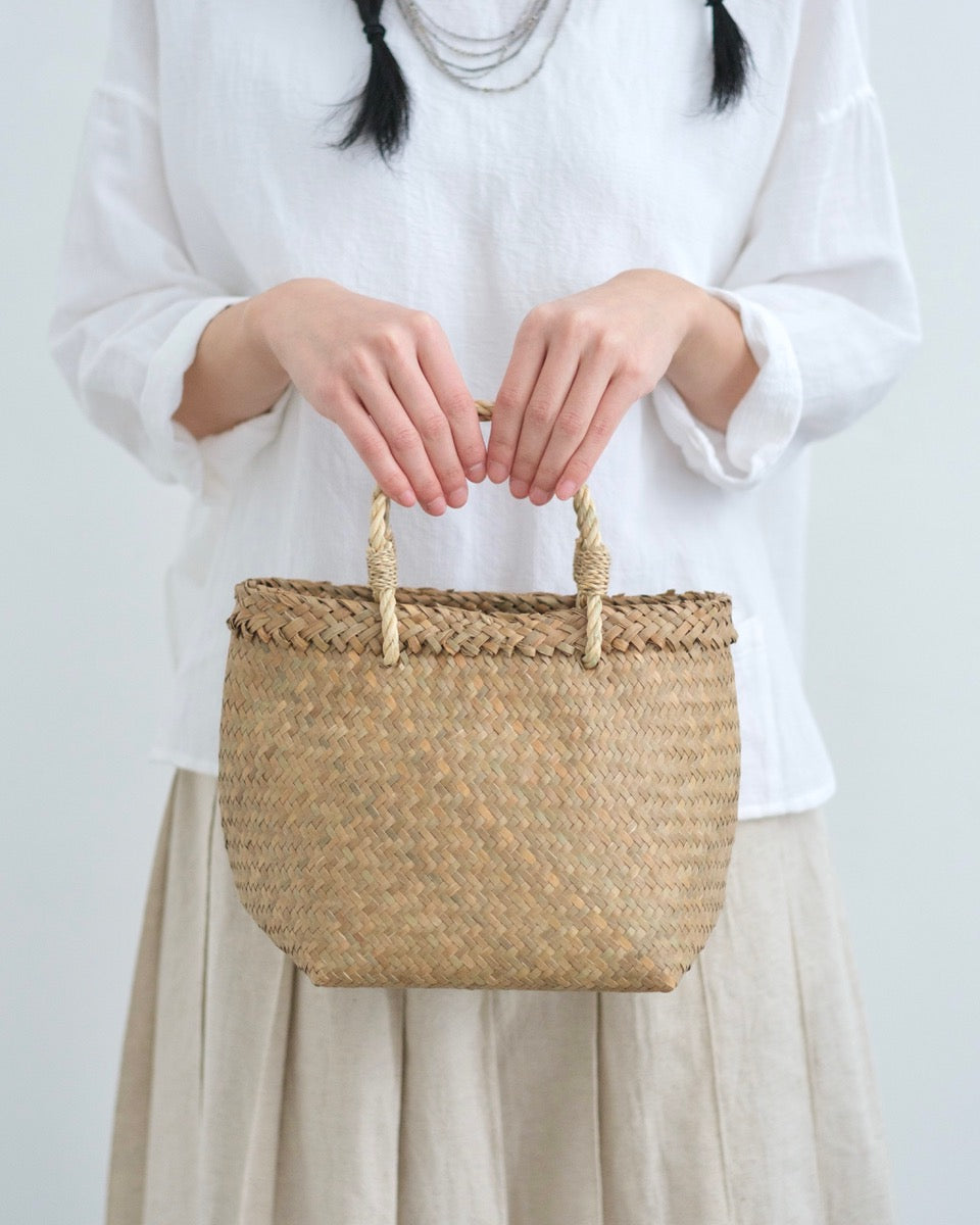 タイの南部で育つkrajood(クラチュー)と呼ばれる水草を丁寧に編んだかごバッグです。