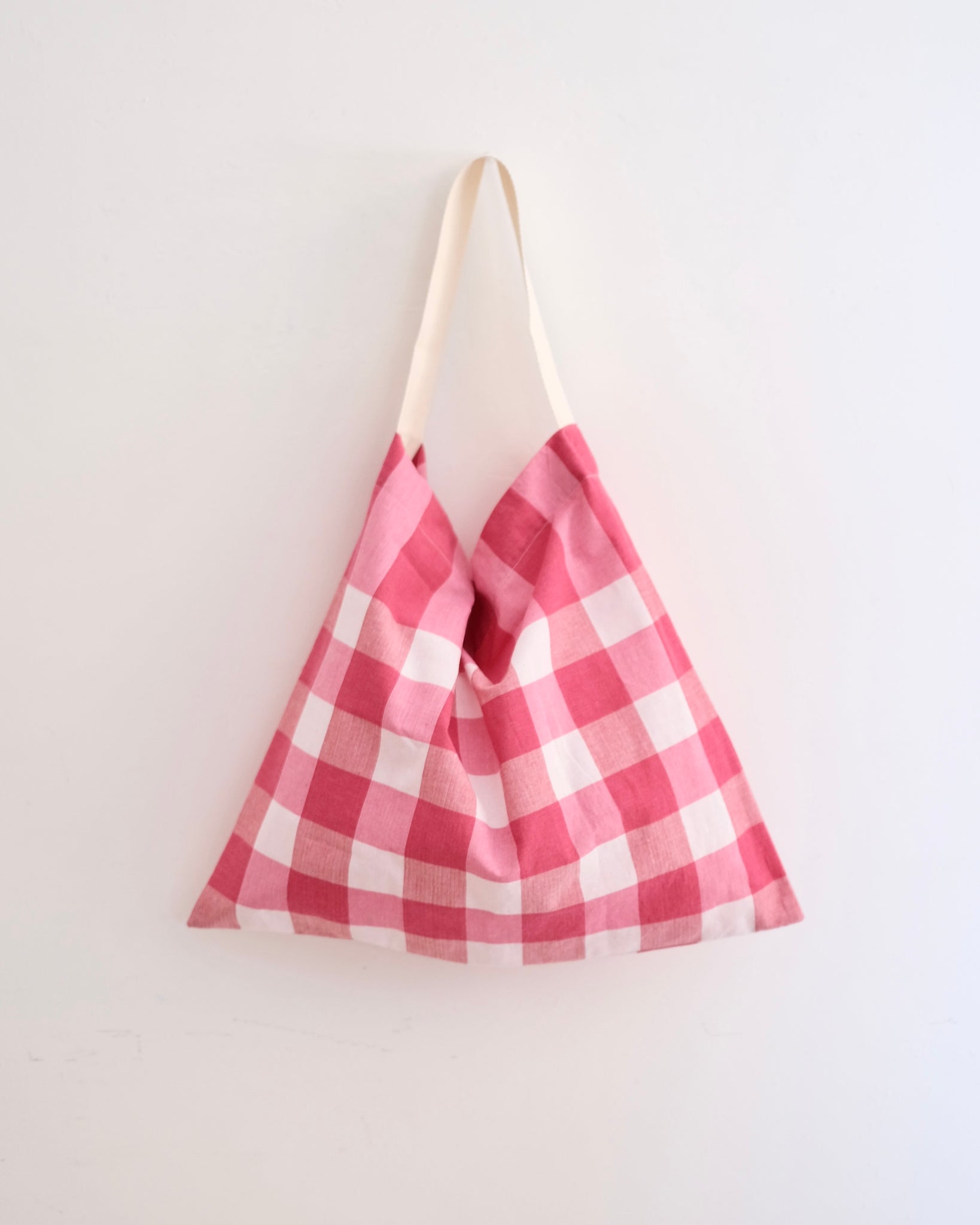 タイのチェック柄のマルチクロス「パーカオマー」を 使ったオリジナルのワンショルダーエコバッグです。