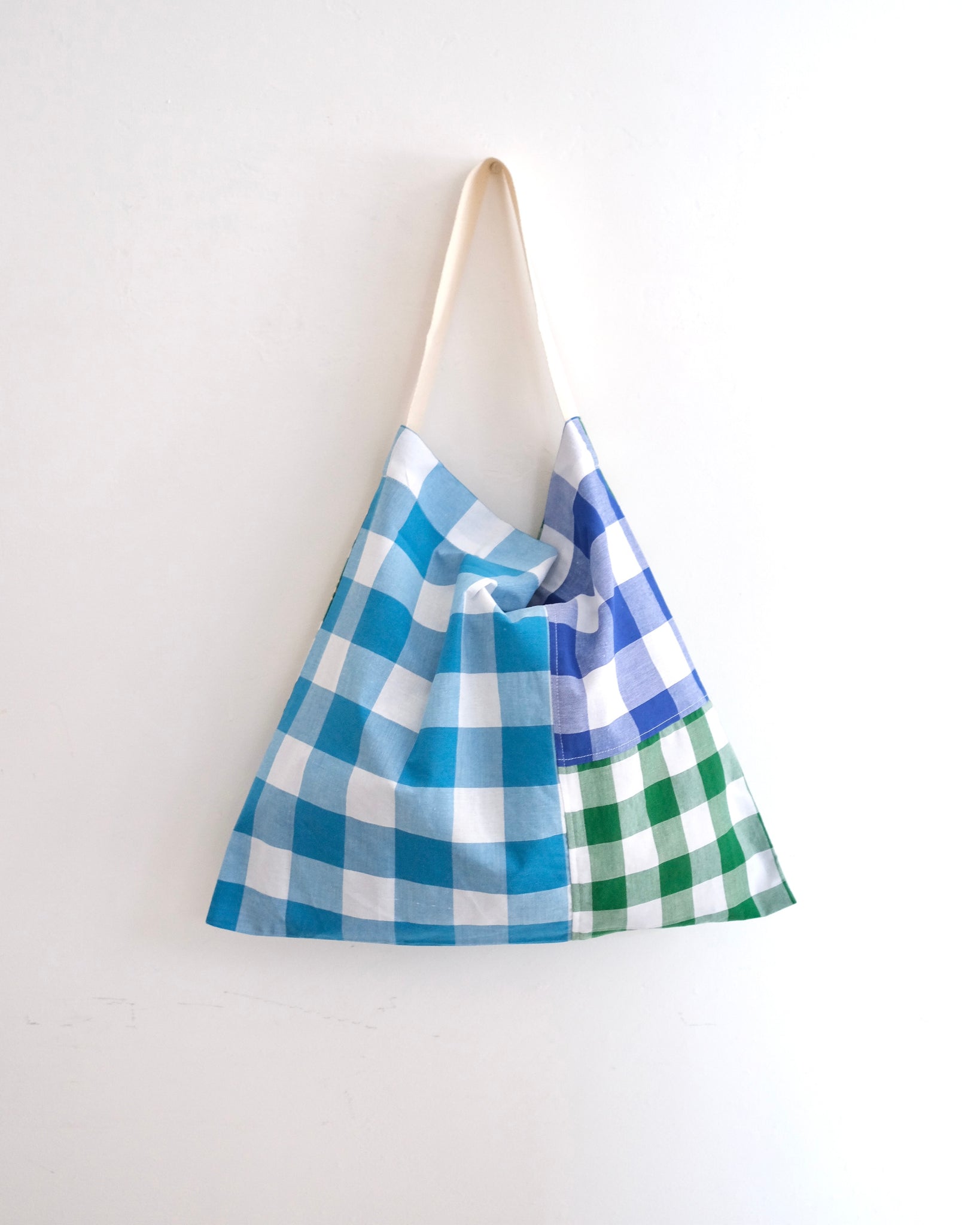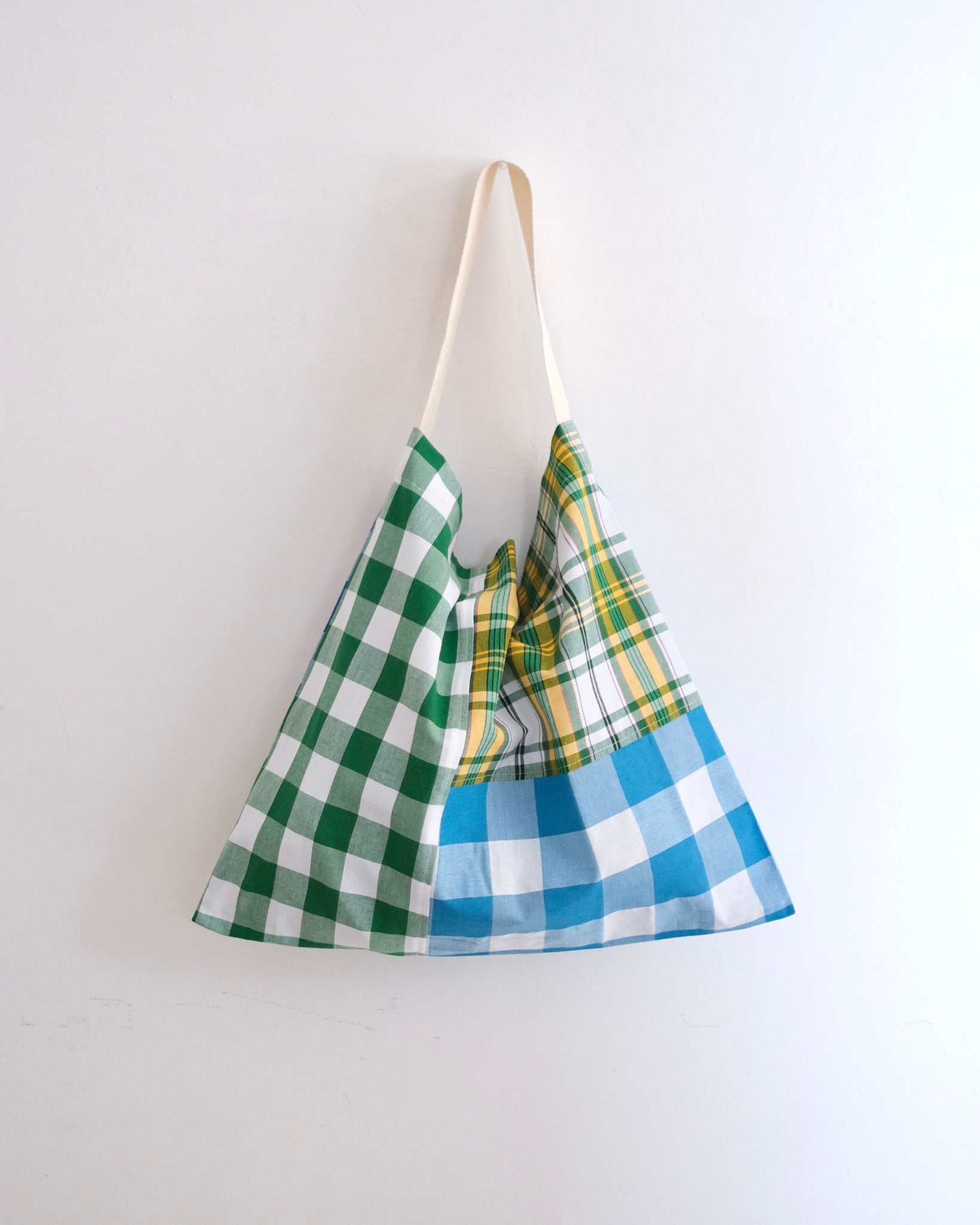 タイのチェック柄のマルチクロス「パーカオマー」を 使ったオリジナルのワンショルダーエコバッグです。