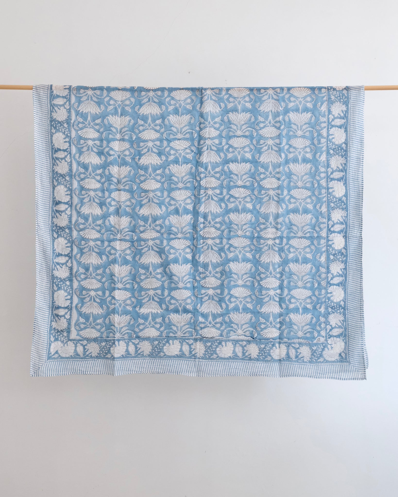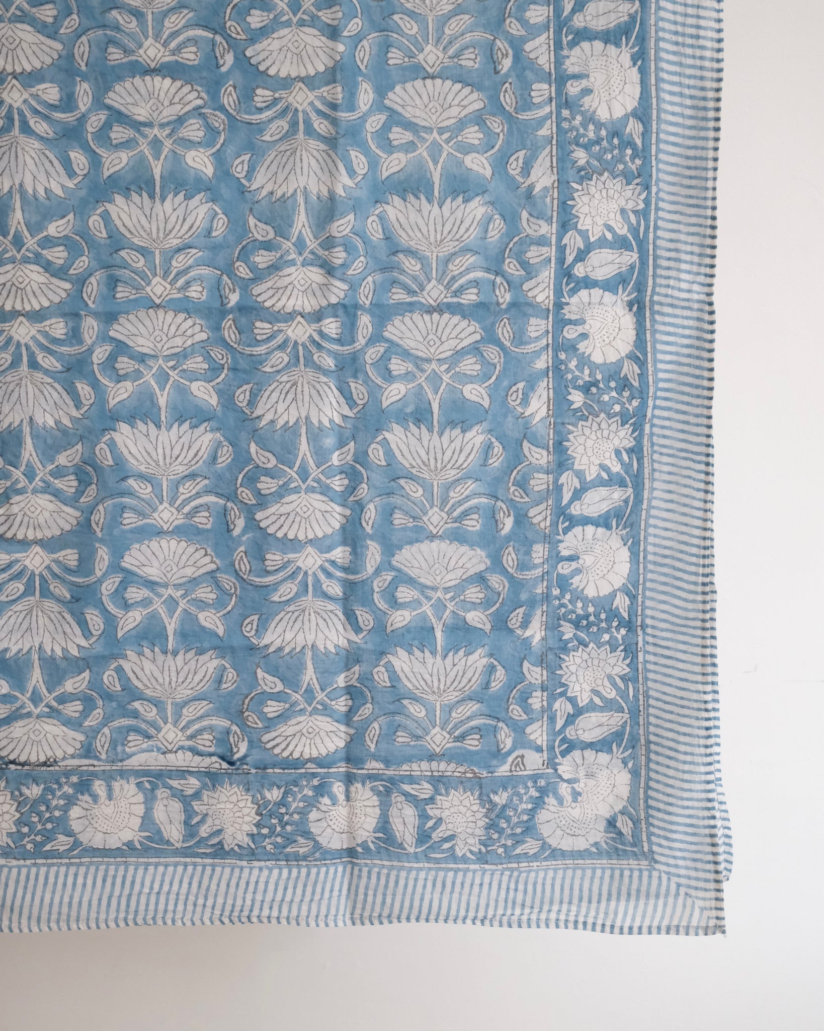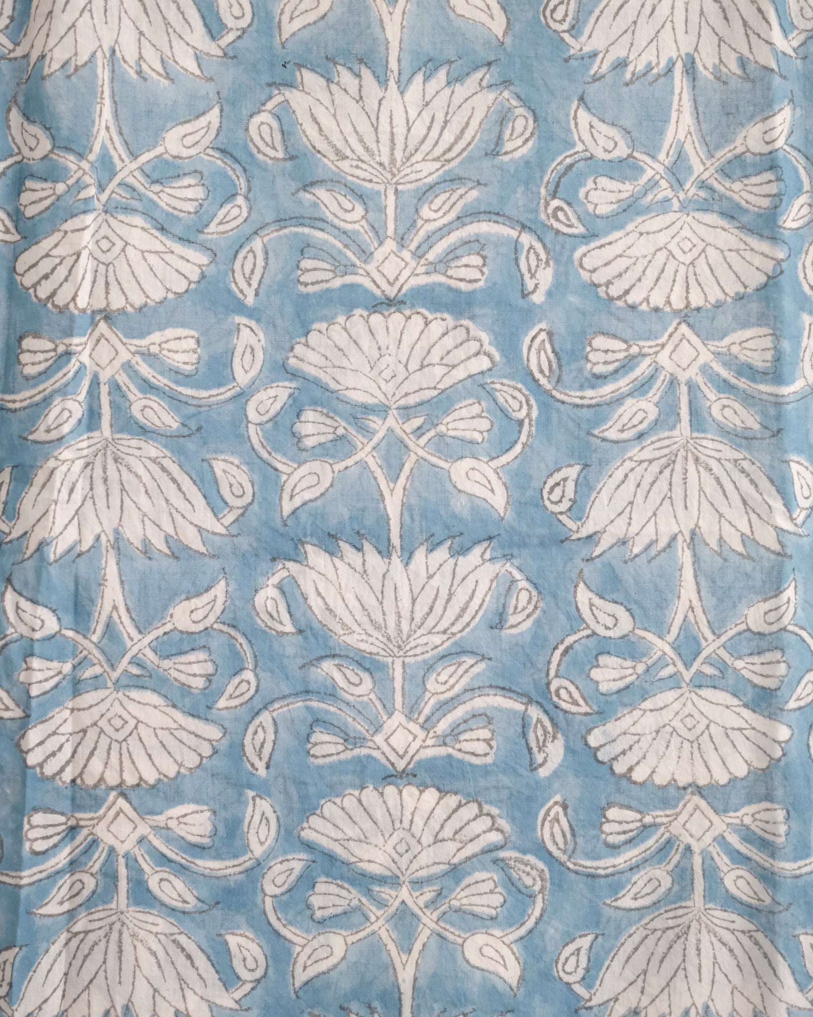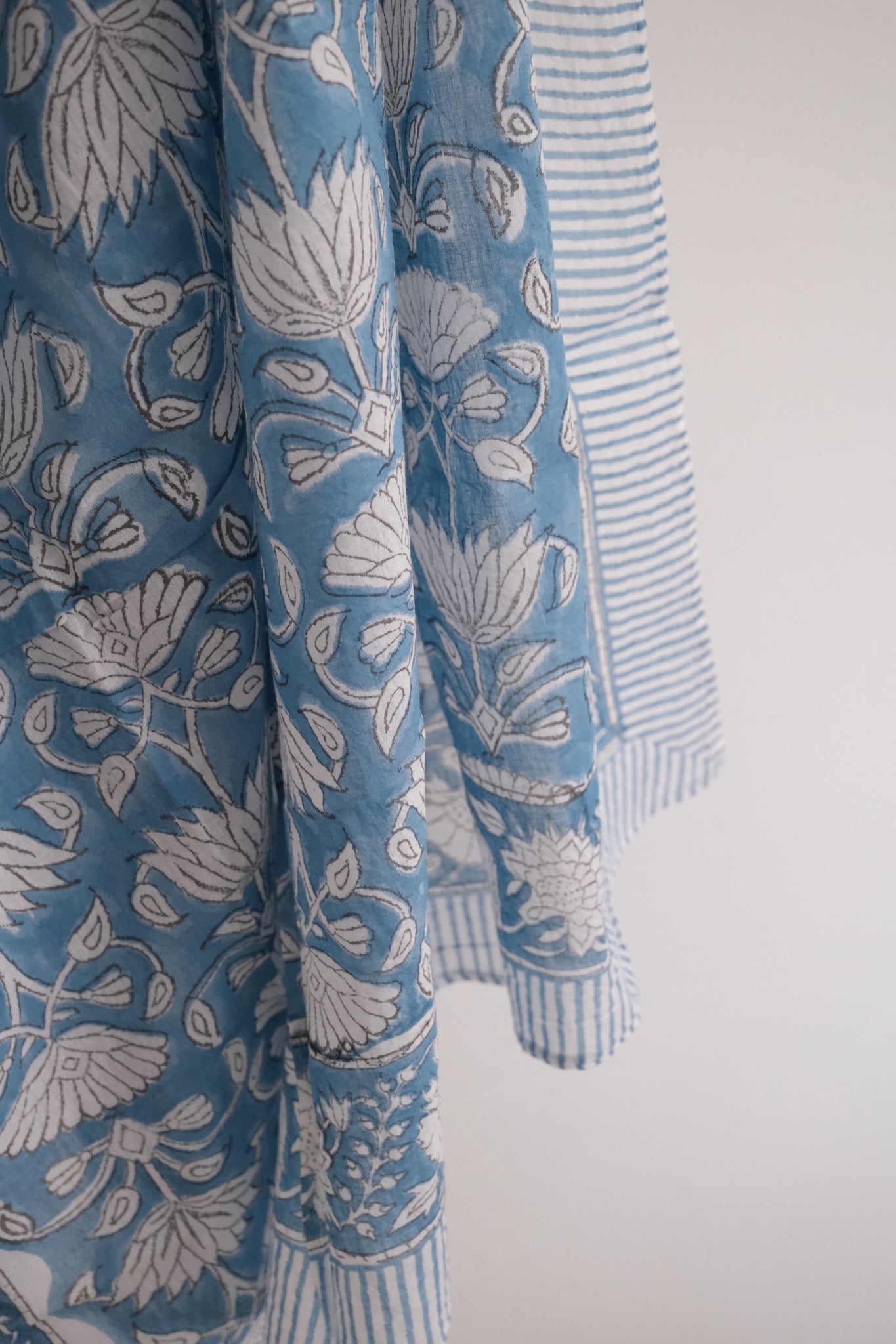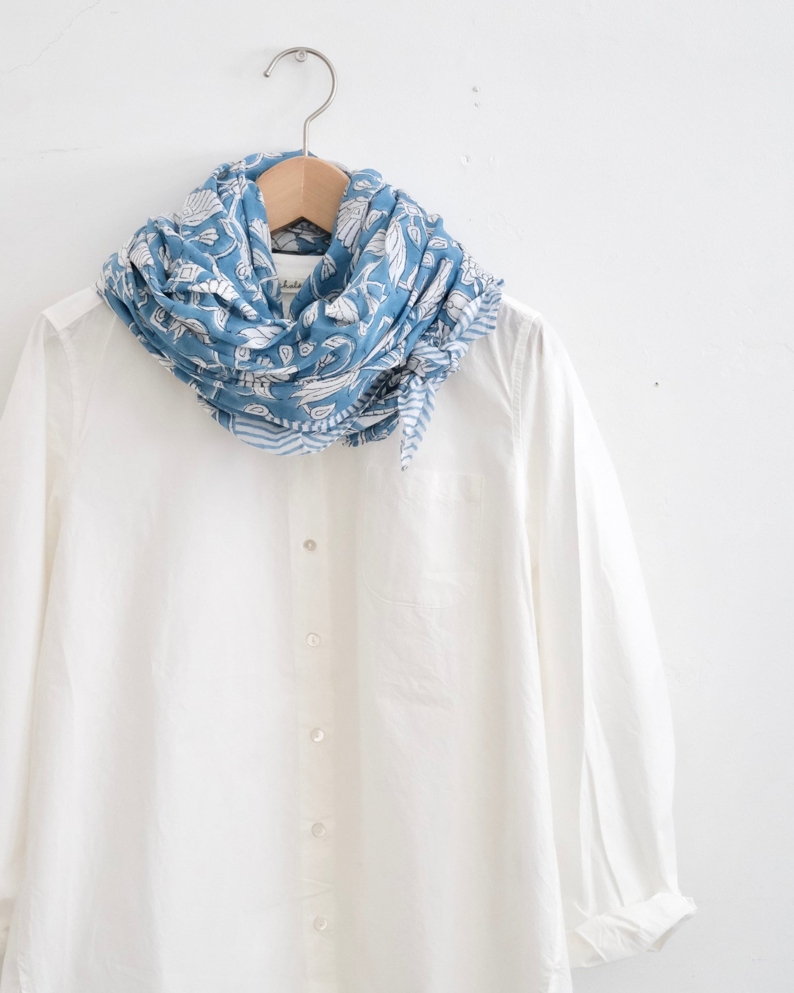 インドの伝統的な花柄のブロックプリントが美しい大判のストール。薄手のコットンでさらりとした肌触りです。とても軽いので持ち歩きにも便利なストールです。