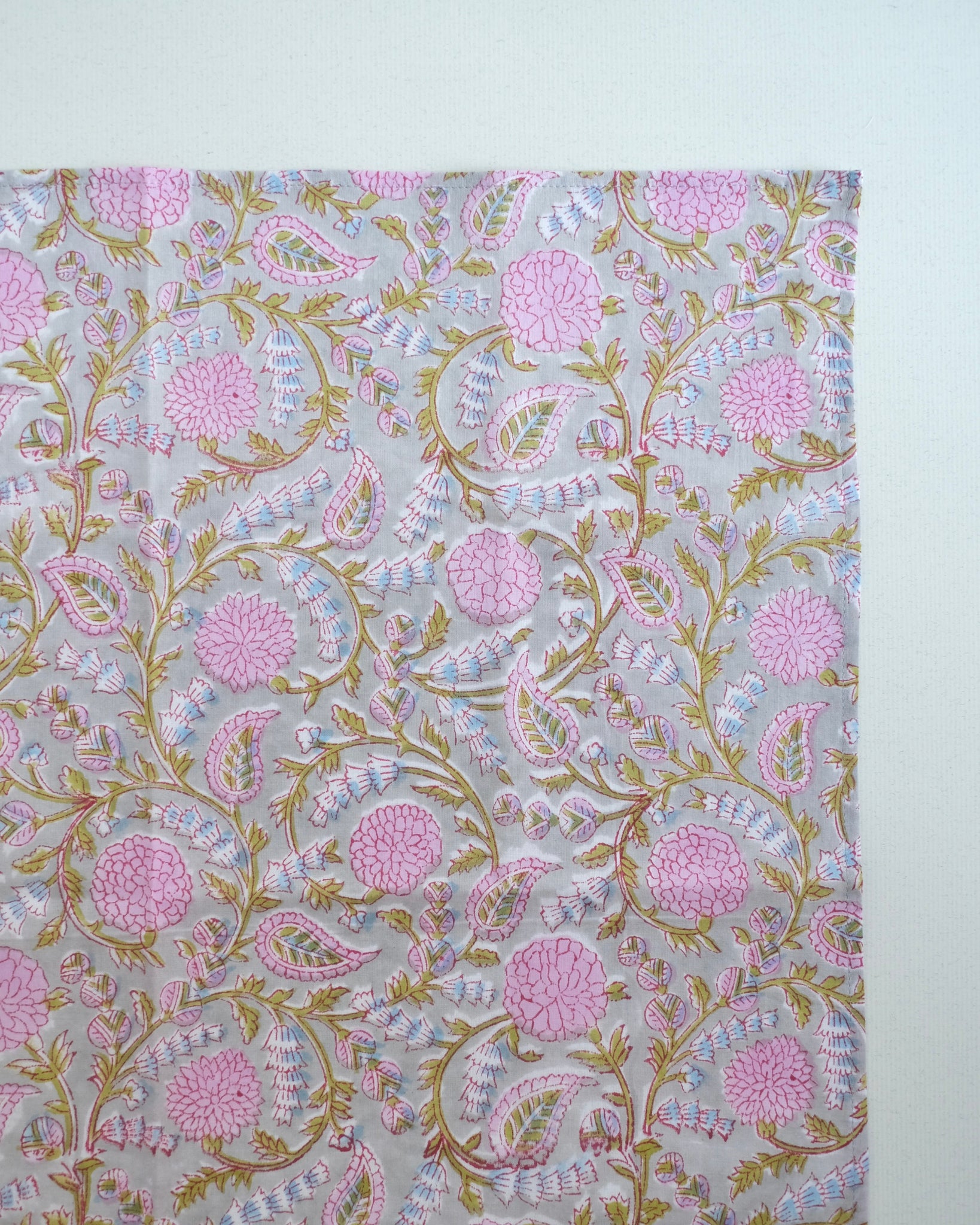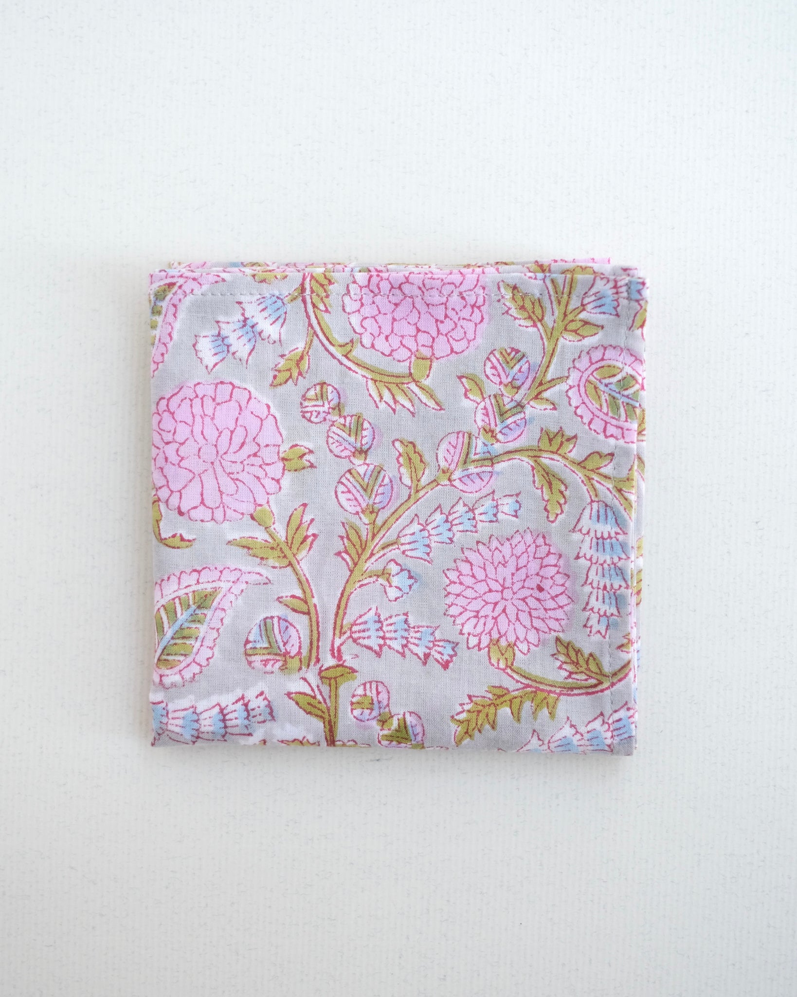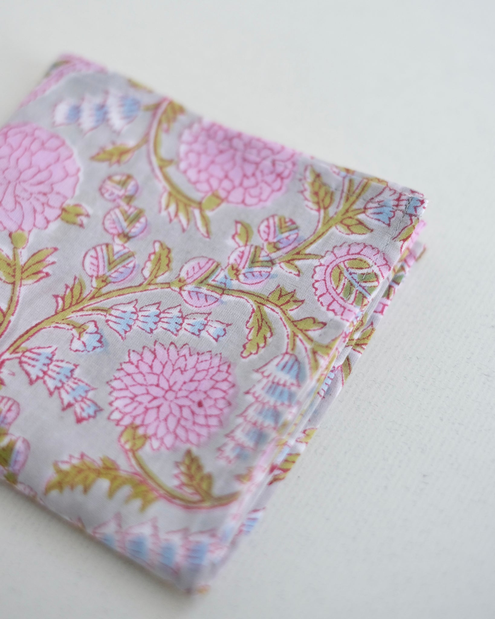 ブロックプリント ハンカチ(クレイピンク・ボタニカル)