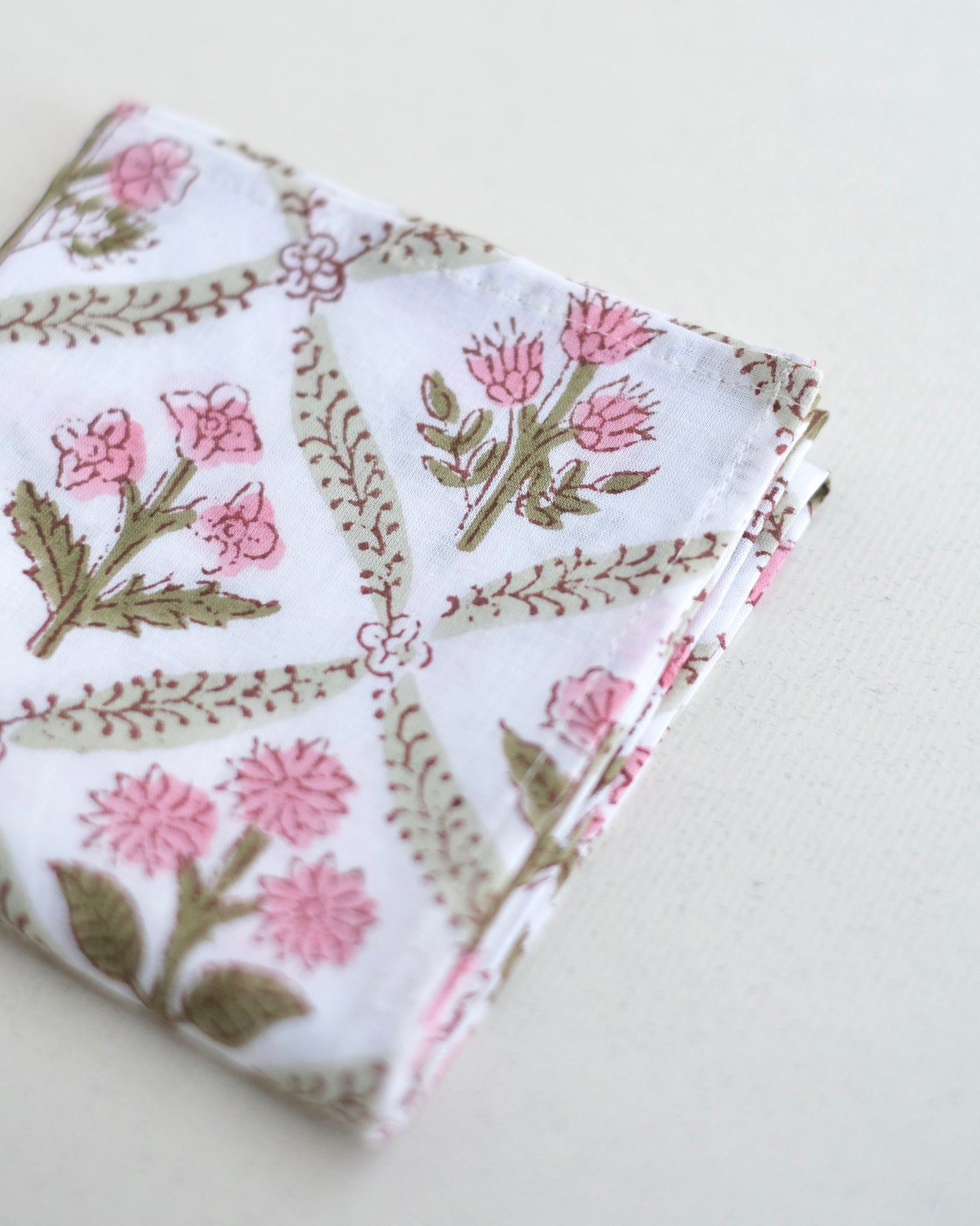 ブロックプリント ハンカチ(ピンク・ラティスフラワー)