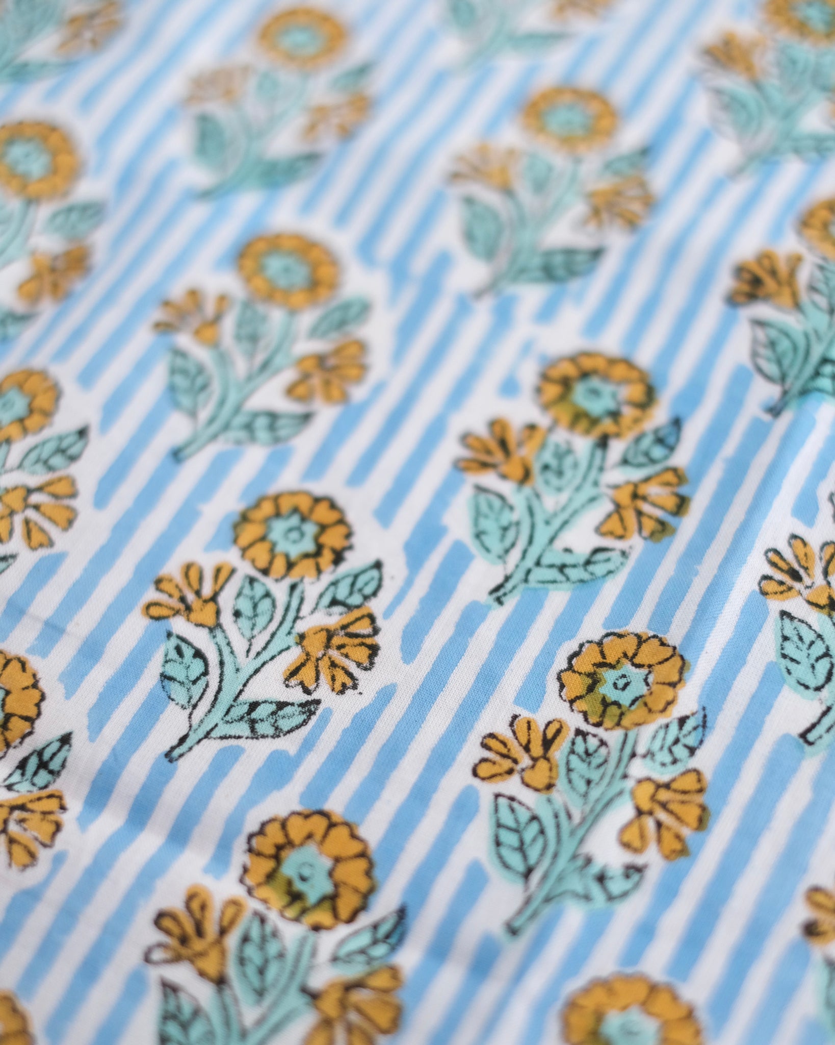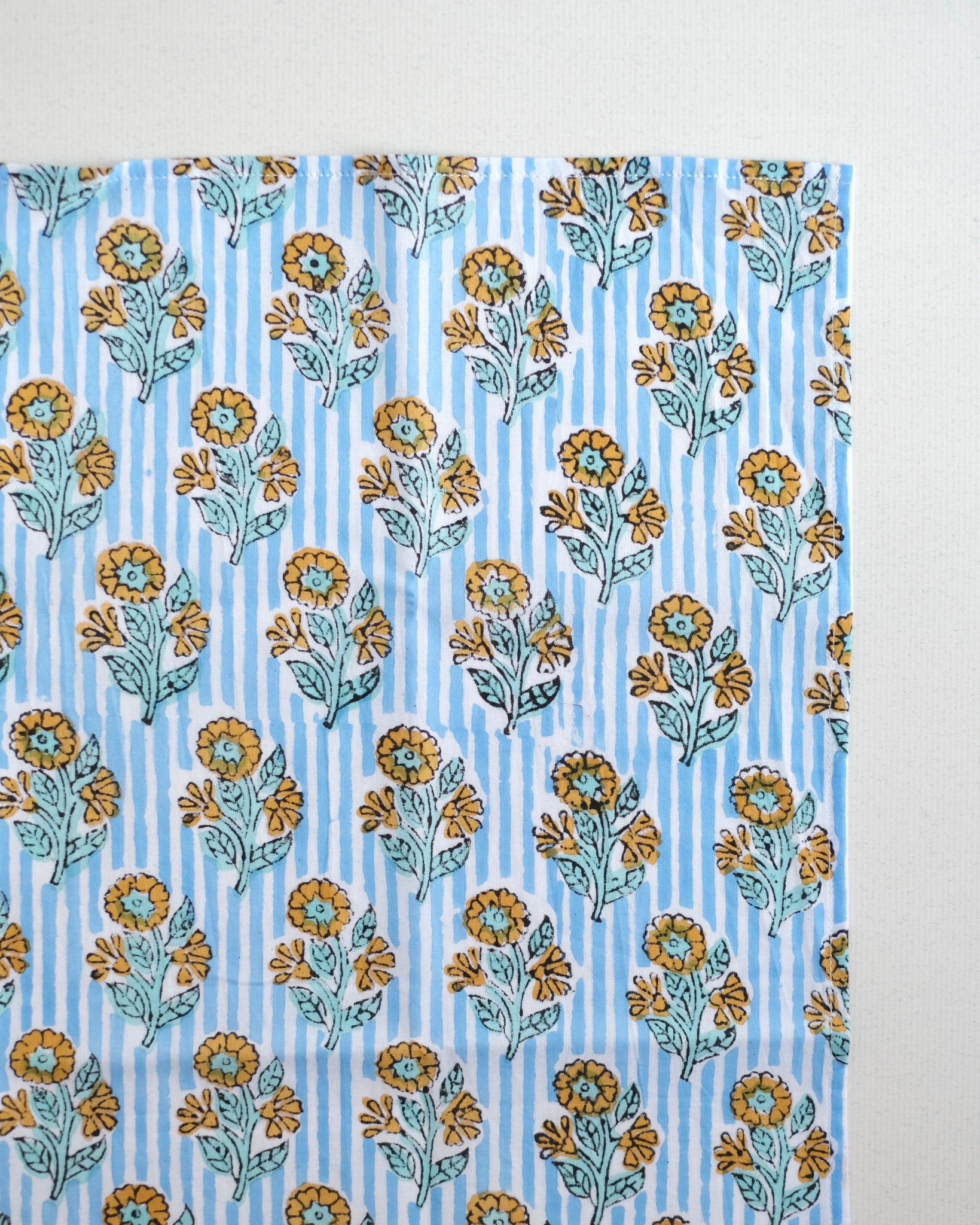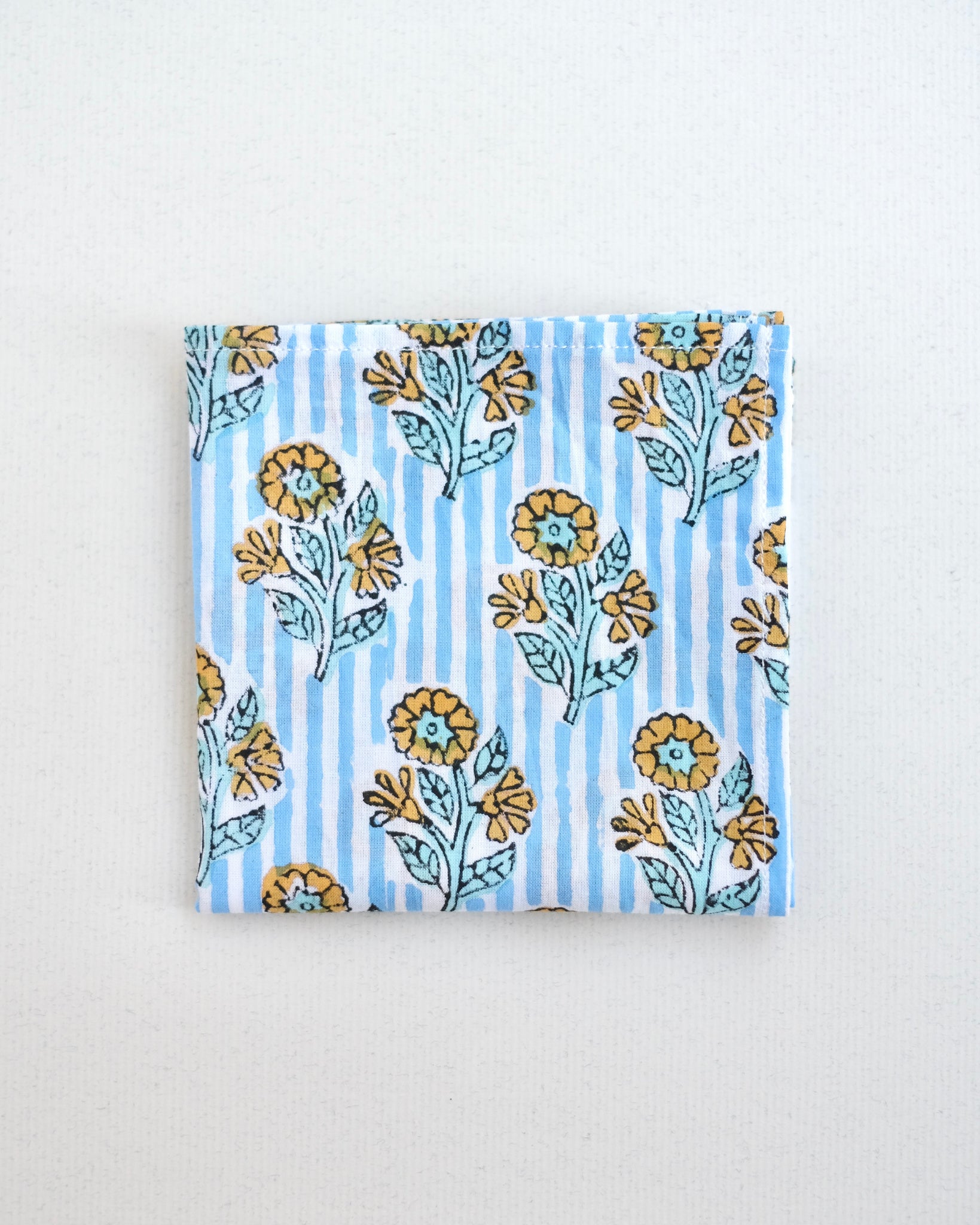ブロックプリント ハンカチ(ブルー・ストライプ&フラワー)