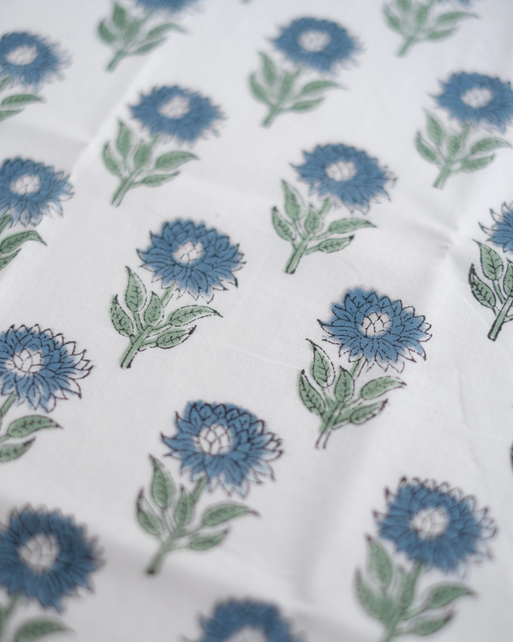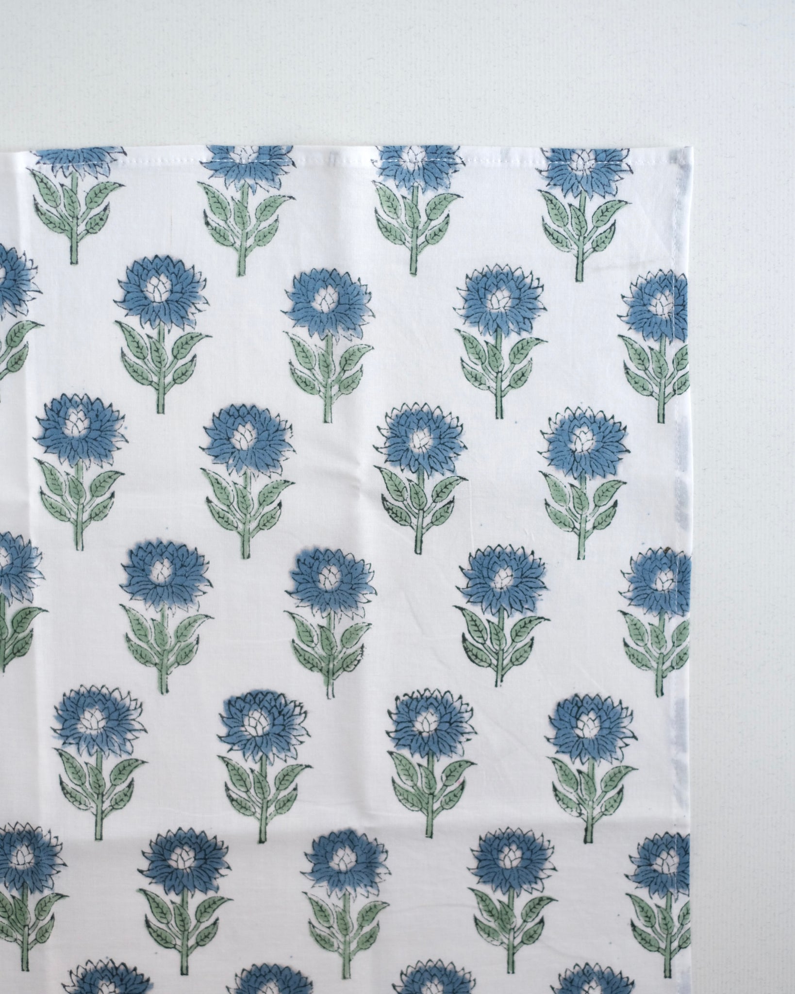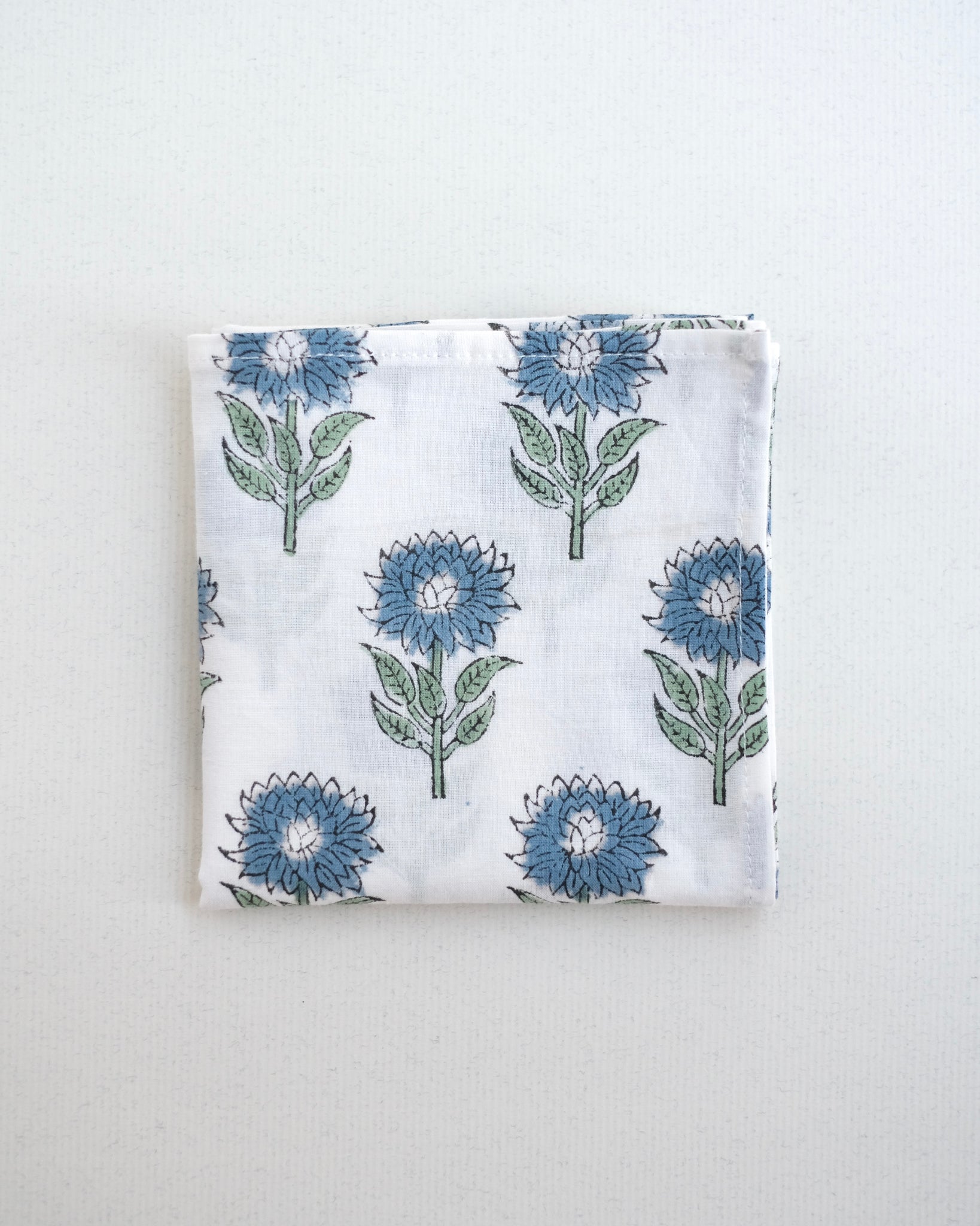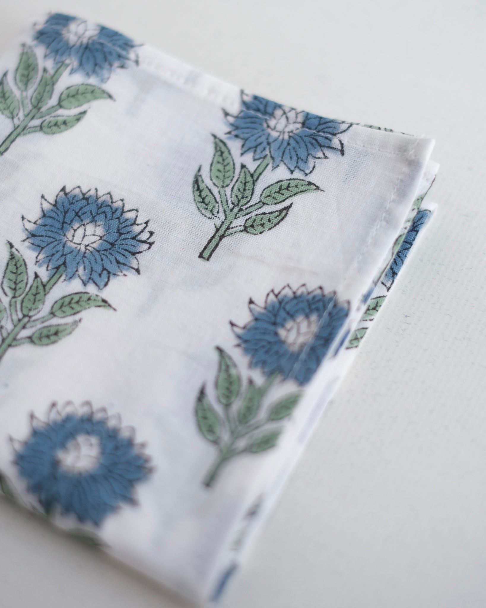 ブロックプリント ハンカチ(ホワイト×ブルー・インディゴフラワー)