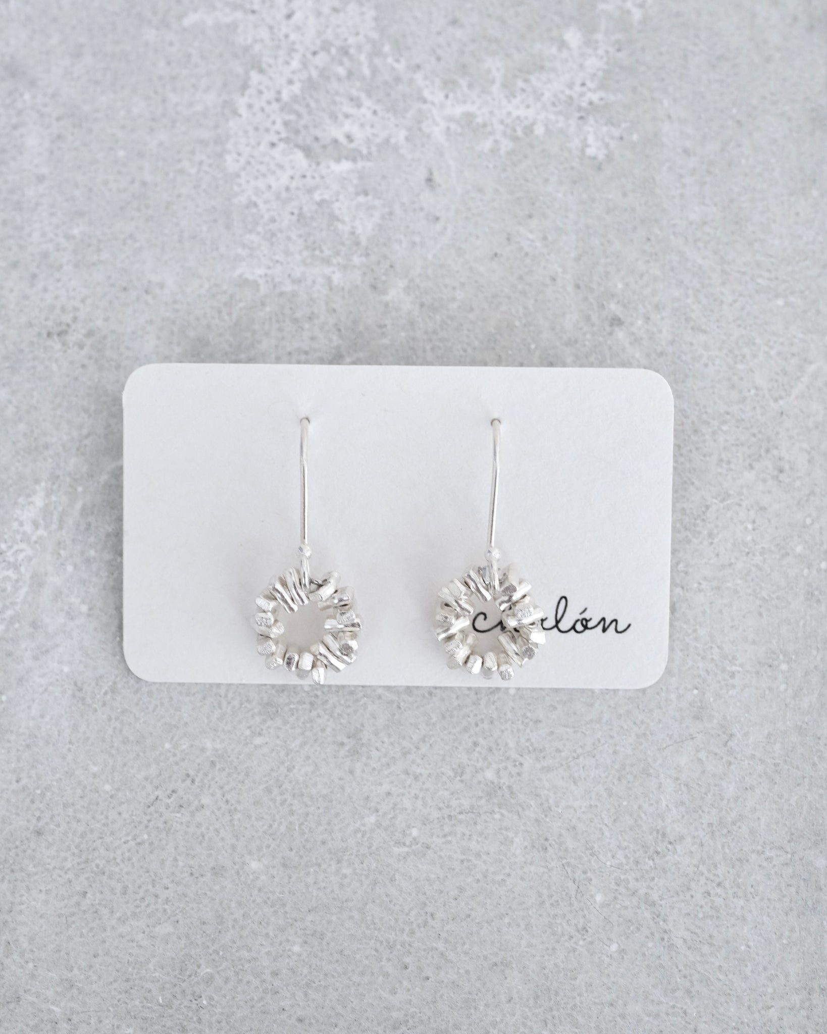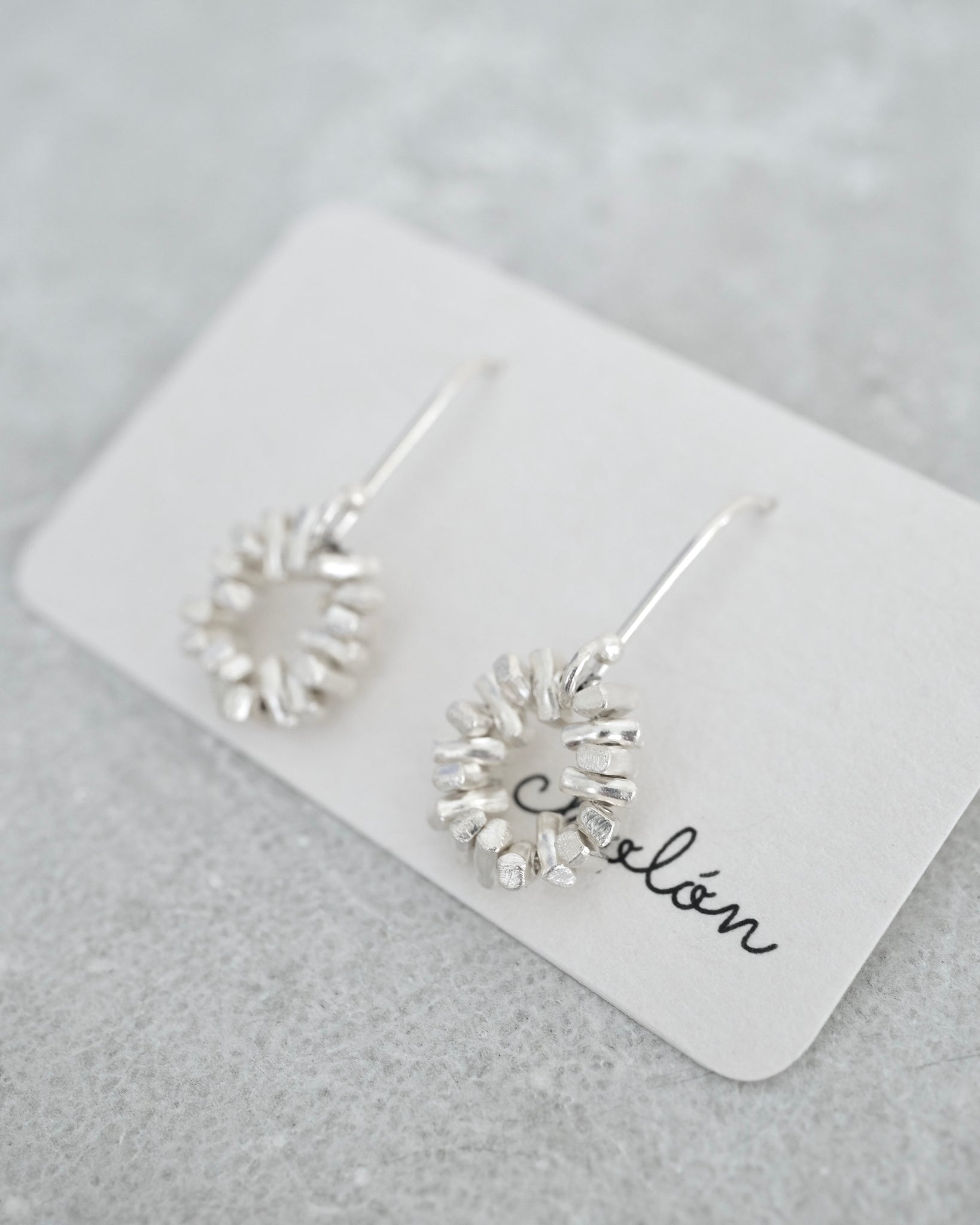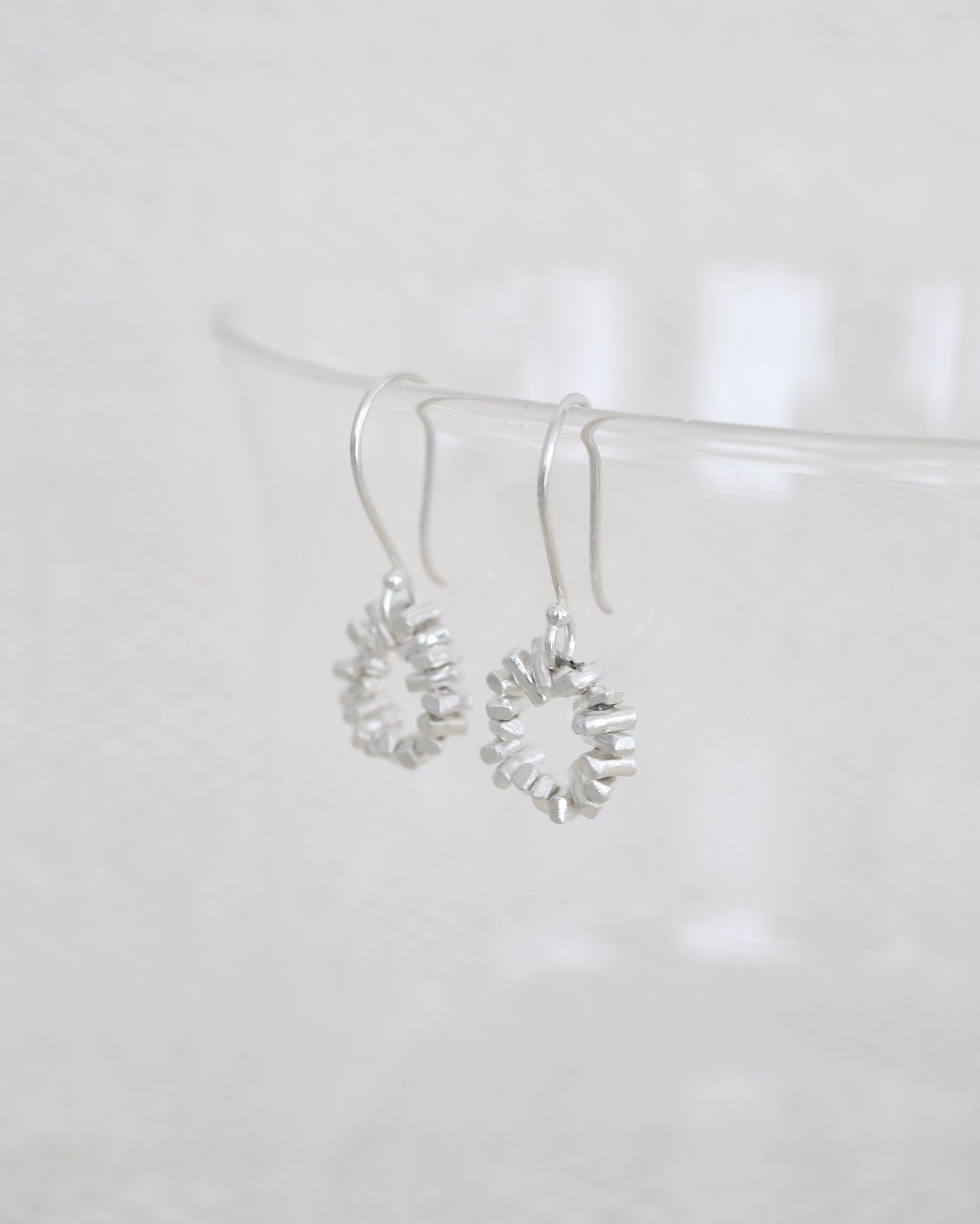 タイ北部の山岳民族カレン族が作る「カレンシルバー」のピアスです。「サークル」は小枝のような細いシルバーパーツをサークル状に繋いだモチーフが揺れるデザイン。角度によって、異なる輝きと表情を見せてくれる可愛らしいピアスです。