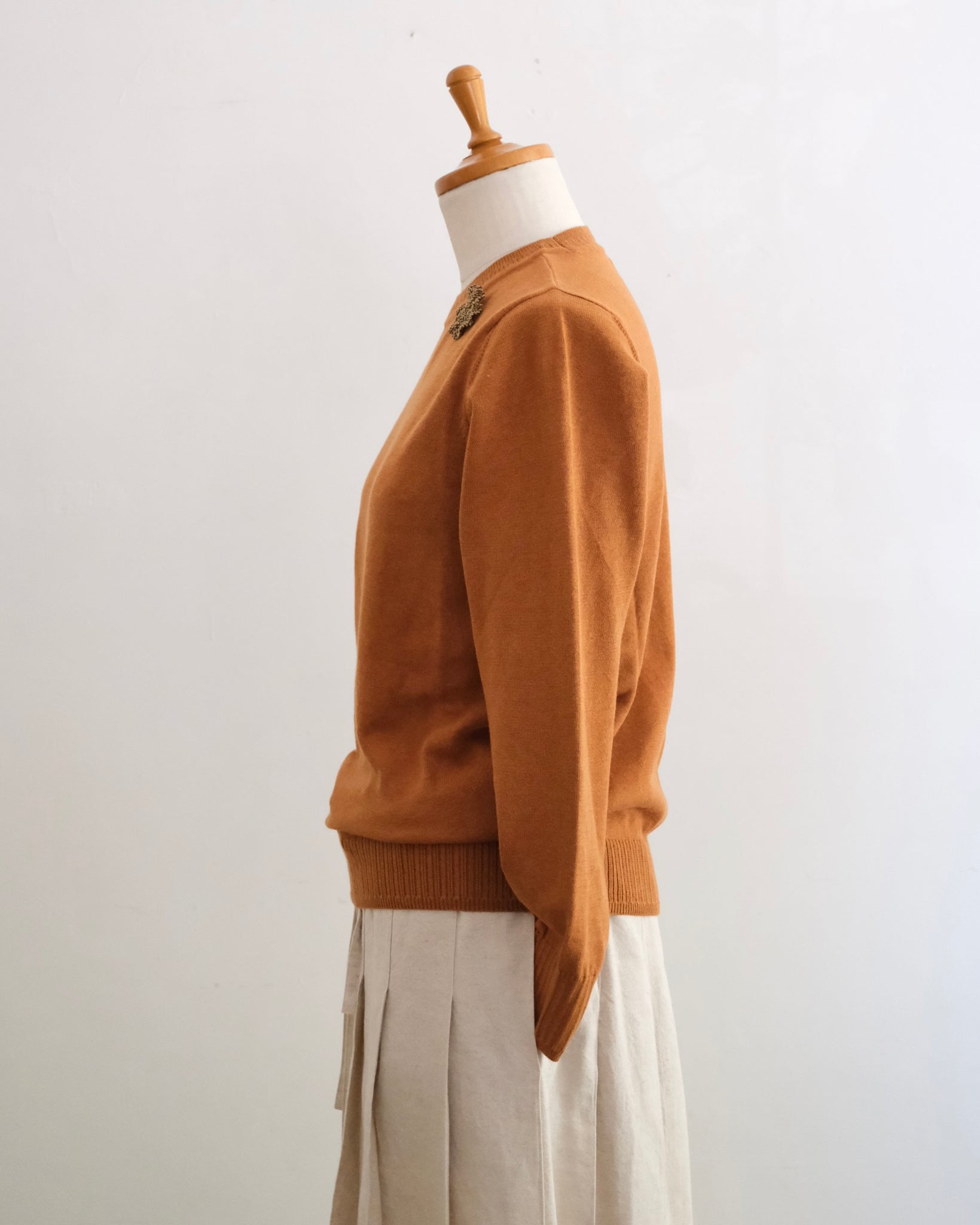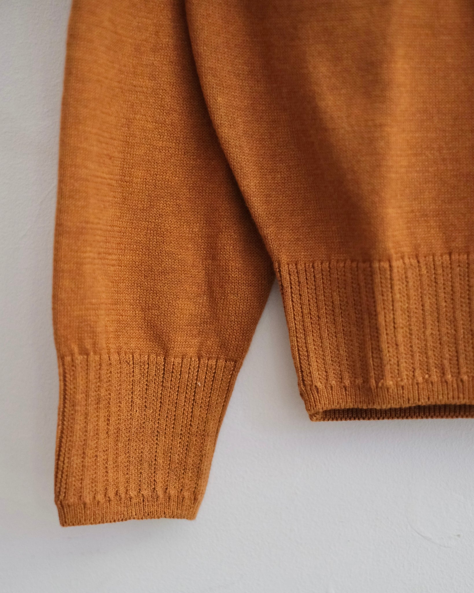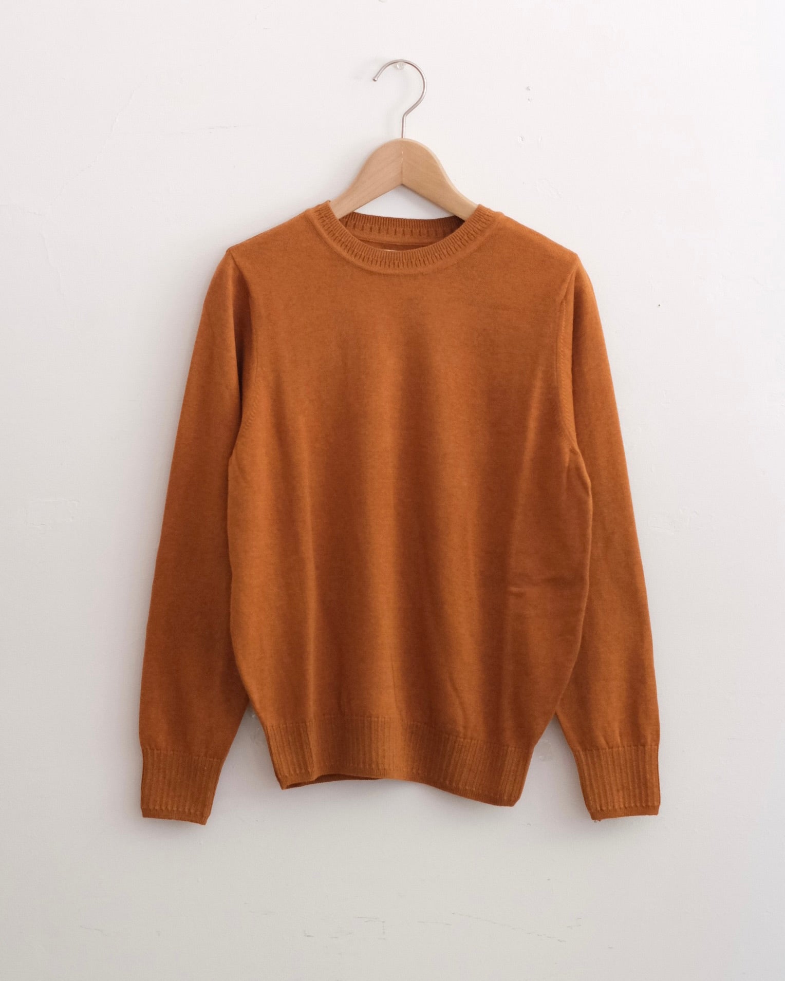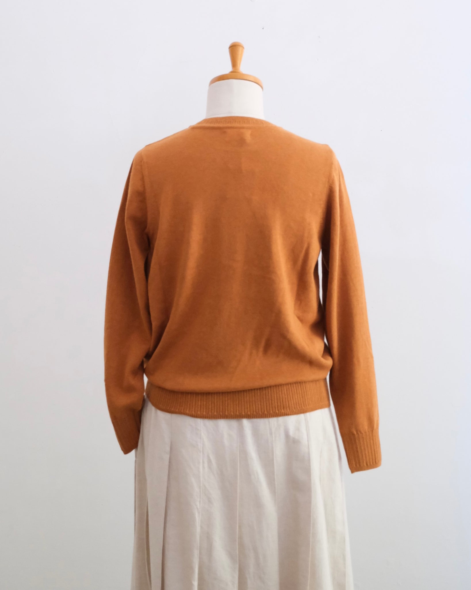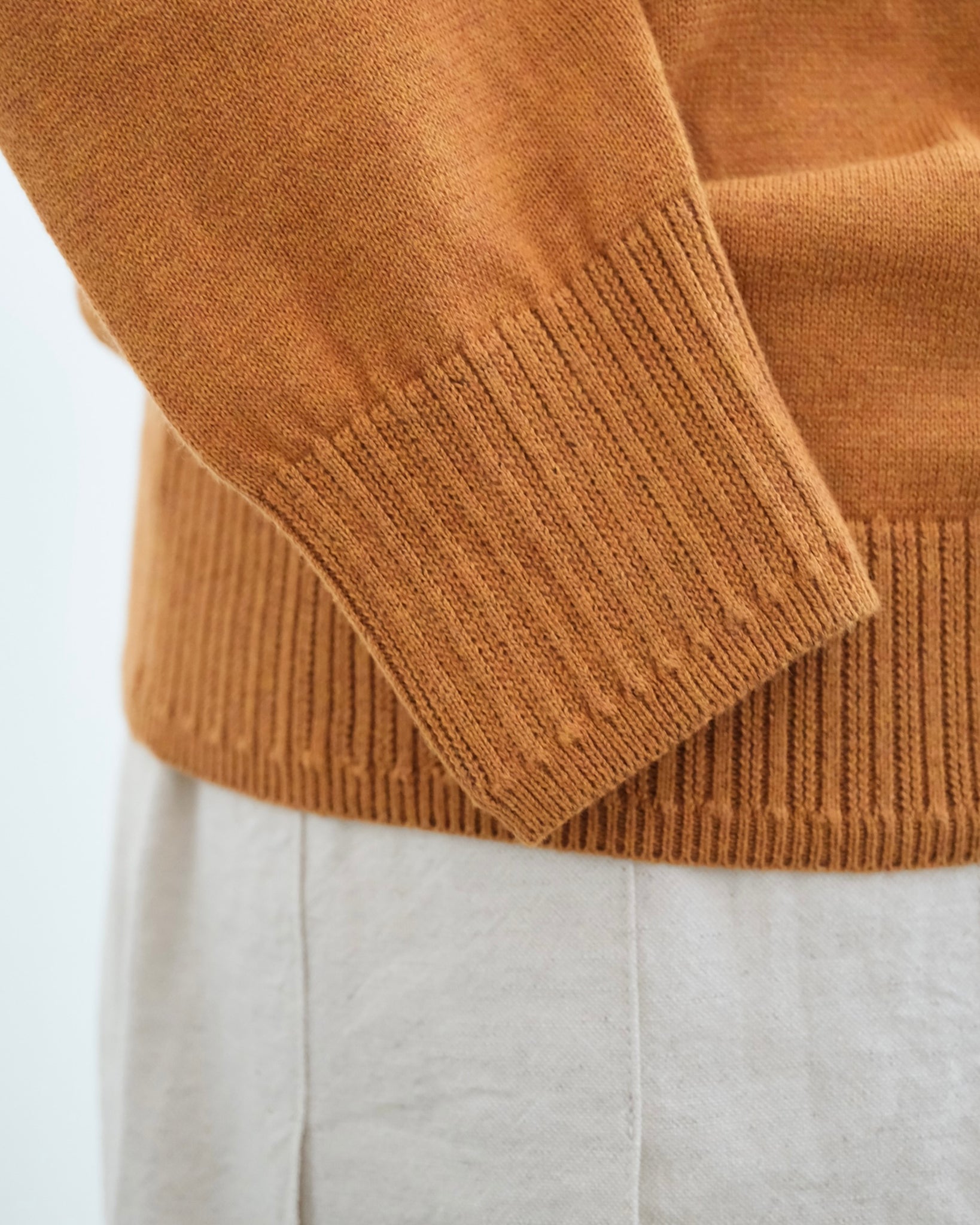 肌触りの良いオーガニックコットンを使用したシンプルなニットプルオーバーです。襟ぐりは小さめですっきりした印象、襟ぐり、袖口、裾のリブの模様編みがアクセントになっています。コットン素材なのでウールと比べ長い季節着ていただけるニットです。